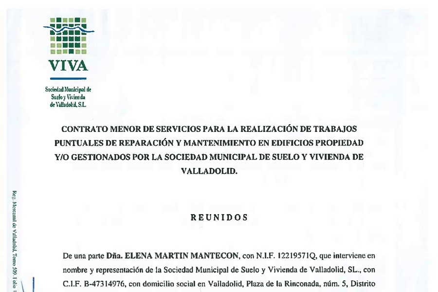 • FORMALIZACIÓN DEL CONTRATO DE LOS TRABAJOS DE MANTENIMIENTO GENERAL DE LAS VIVIENDAS, LOCALES Y ZONAS COMUNES DE LOS EDIFICIOS PROPIEDAD DE LA SOCIEDAD MUNICIPAL DE SUELO Y VIVIENDA DE VALLADOLID, S.L.
