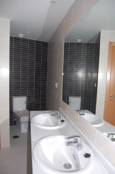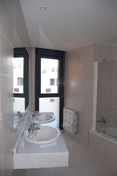 - Uno de los cuartos de baño, con lavabo doble.
