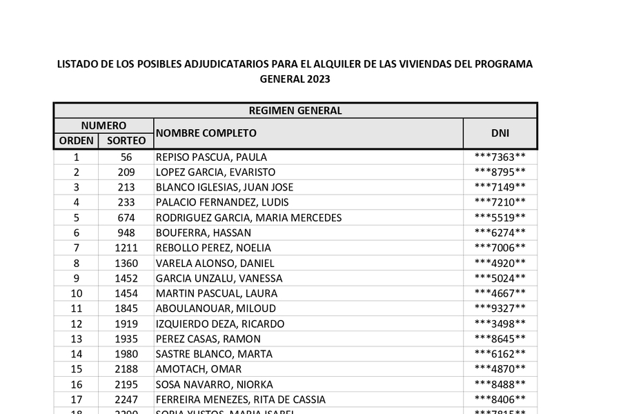 18/10/2023Actualización del Listado de los posibles adjudicatarios para el Alquiler de las Viviendas del Programa General 2023
